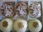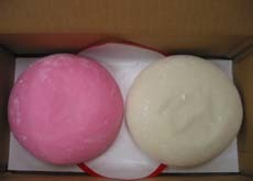 紅白まんじゅう お祝いの席に一層の彩りを添える紅白まんじゅう。入学、卒業、成人式、結婚、長寿祝い、創立など様々なお祝いにご利用ください。 紅白大福 ¥470~ も承ります。